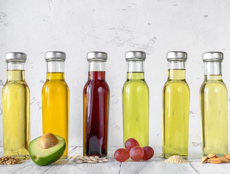 Huiles végétales biologiques, premières pressions à froid, désodorisées, COSMOS.